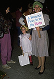 Mommy Lady and Little Lady from one of the hundreds of LAW affiliate chapters, greeting Phyllis Schlafly outside of a hall in Santa Rosa, California.