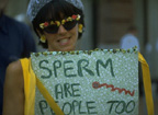 This lady is informing the residents of San Francisco about this very delicate issue as part of the SF Cheerful Freedom Parade.